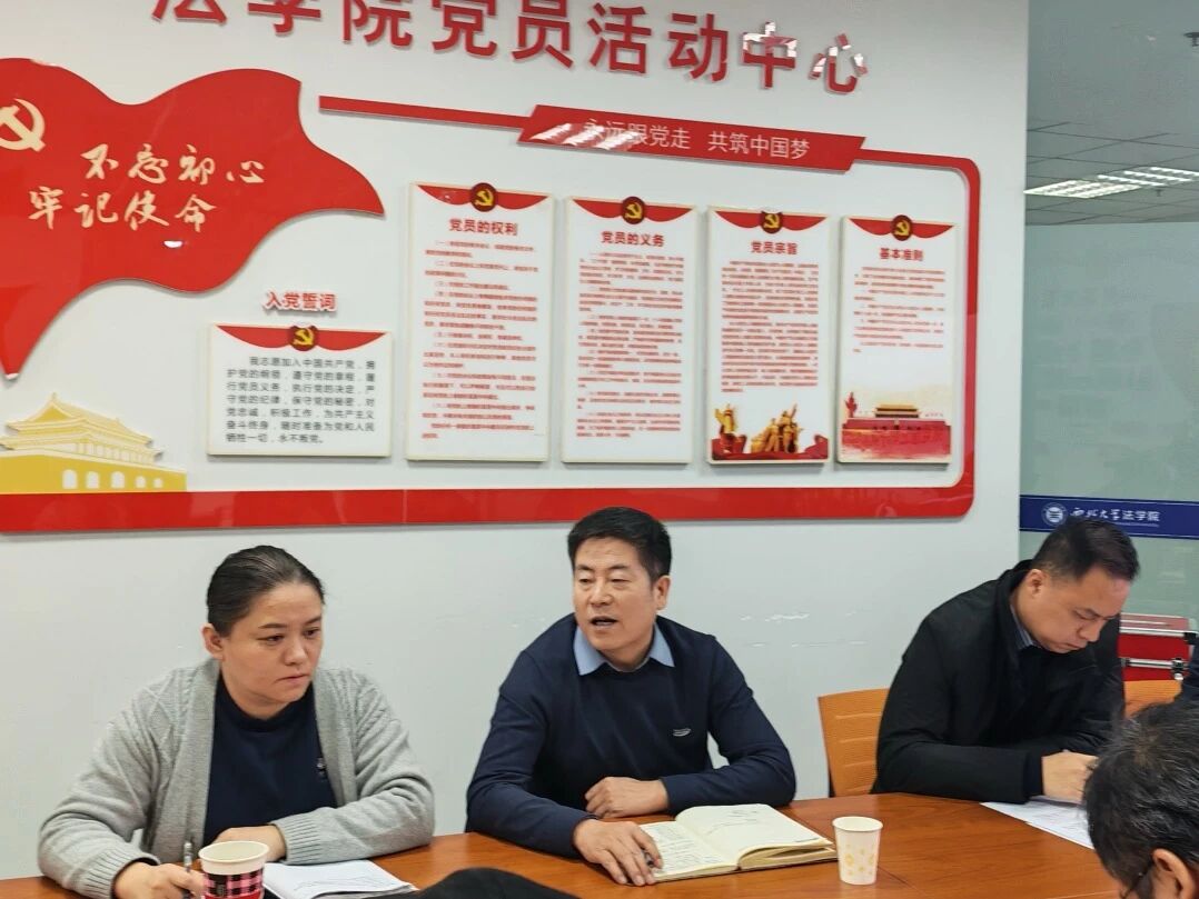 会议最后,李一凡书记作总结发言。他指出,各支部述职全面,成果出彩,令大家欣喜的同时,也让我们认识到基层党建工作存在的一些共性问题,如反映出的学习吸引力不足、形式单一等问题。他强调,党建需结合学科特色与不同学历层次党员需求,针对性地发挥党支部的帮扶指导作用,助力学生成长、业务发展。此外,也要充分发挥法学专业优势,开展法治宣传、法律援助等活动。提出要追求标杆支部建设,具备行业领先、带头人突出、特色鲜明、成果丰富等要素,培育样板支部,杜绝软弱涣散支部。继续深化理论学习,强化基层党组织建设与党员入后教育,推动党建与业务深度融合,加强支部书记培训与党员管理,确保党建赋能学院发展与学生成长。