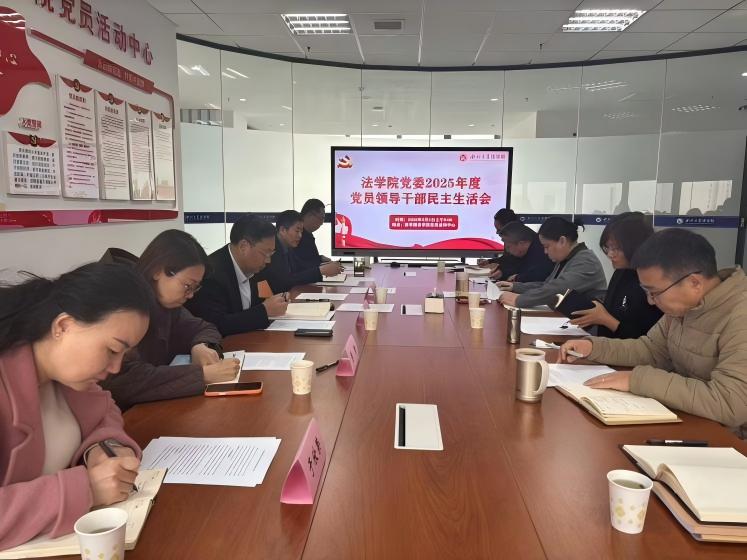 3月5日上午9时,法学院2025年度党员领导干部民主生活会在院党员活动中心召开。第四督导组组长、西北大学学工部(处)长杜勇,第四督导组成员曹智、于欣荣同志,以及学院全体处级以上领导班子参加了会议,新任副院长王社坤同志列席会议。会议由院党委书记李一凡主持。