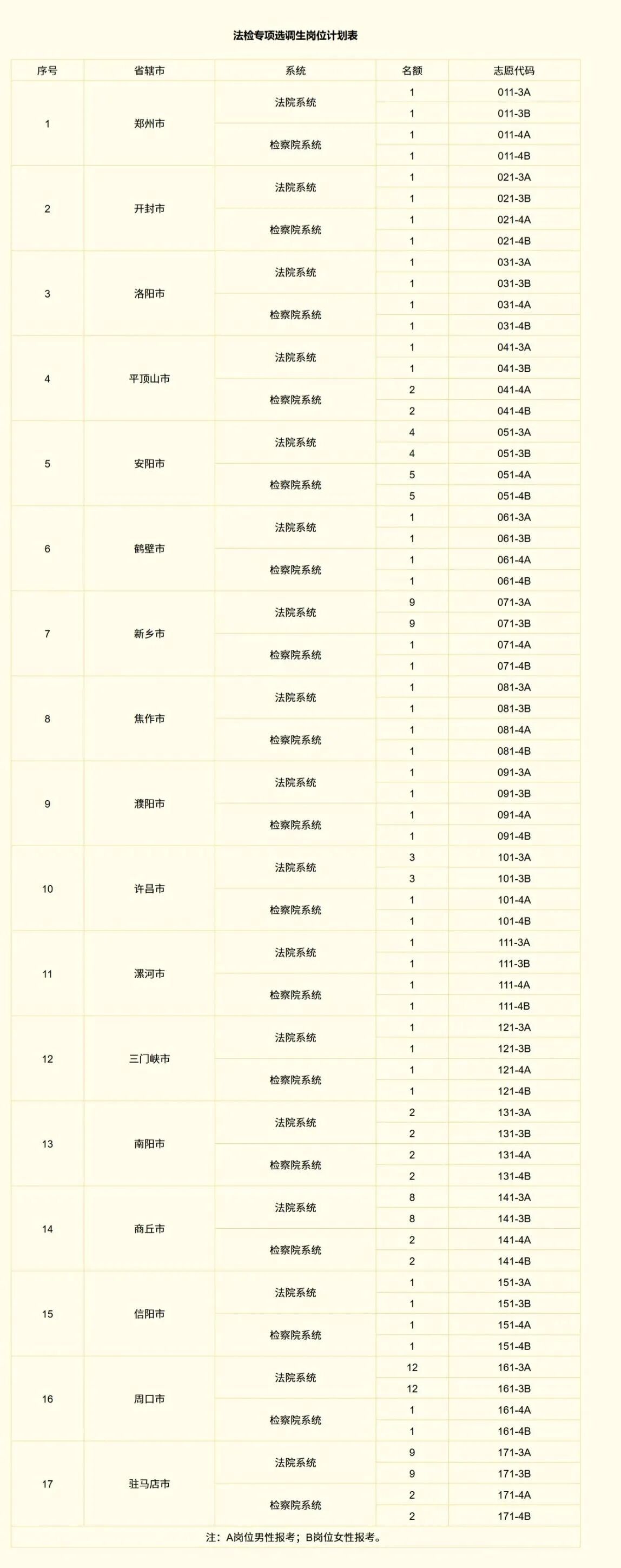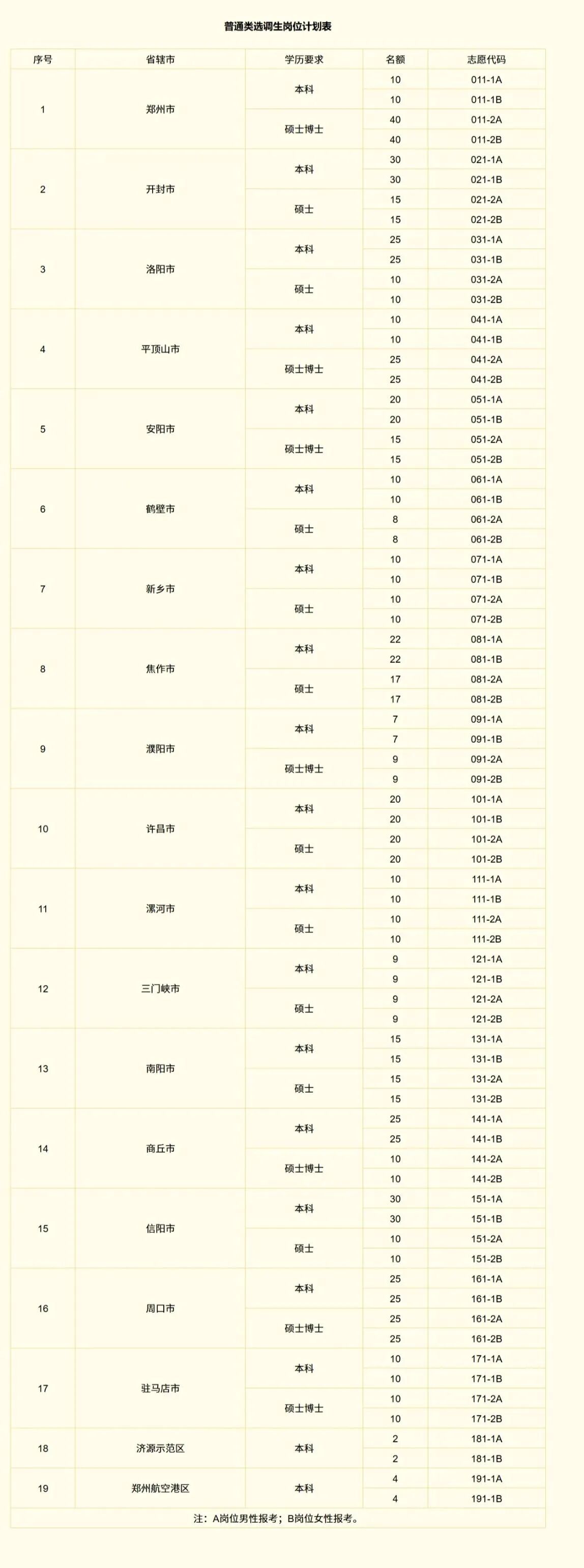 各省辖市(含济源示范区、郑州航空港区,下同)招录计划见附件1、2。