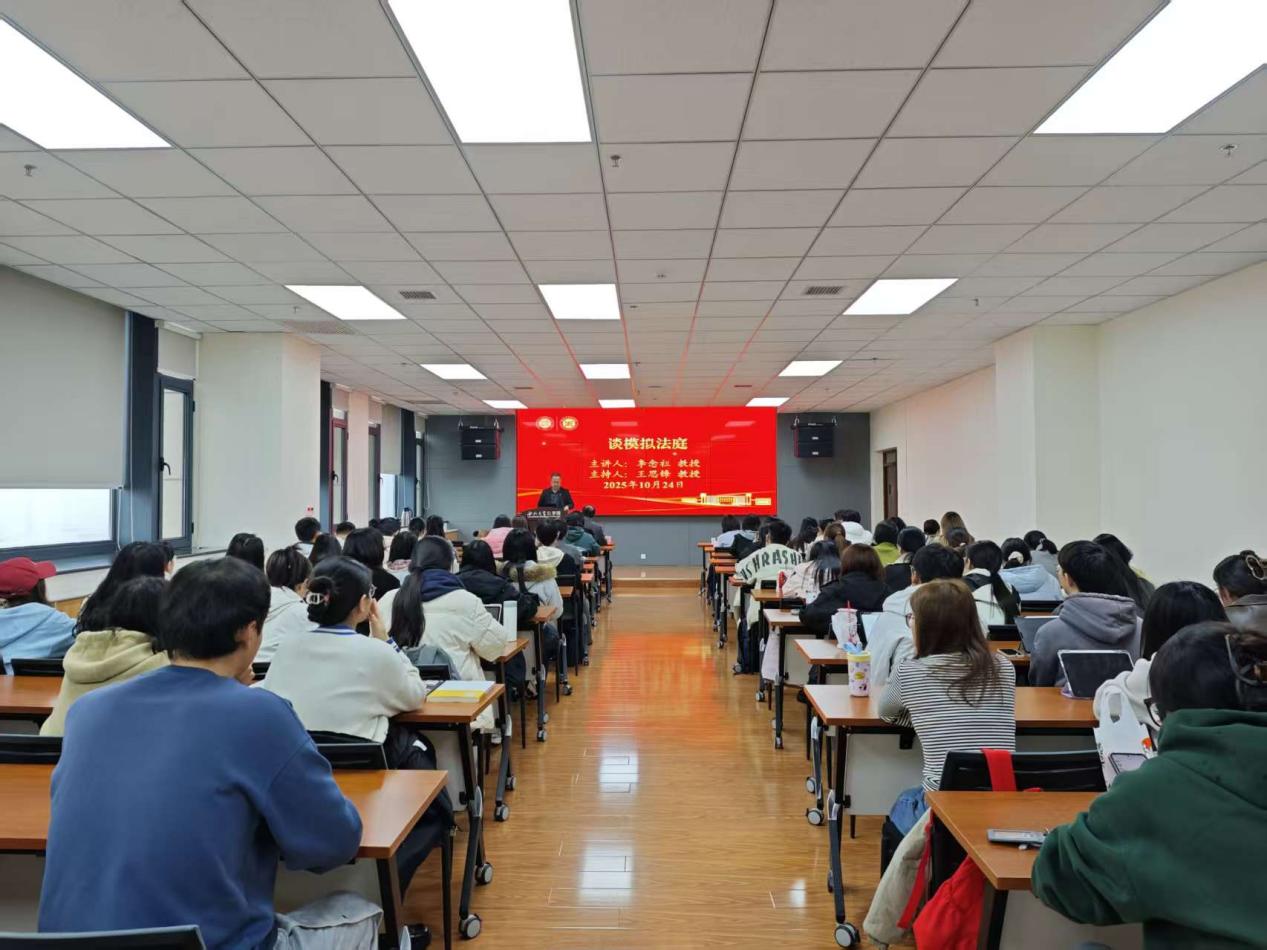 10月24日下午,中华仲裁协会名誉理事长、台湾法曹协会理事长、台湾东吴大学法学院及台湾大学社科院兼任教授(曾任台湾理律法律事务所合伙律师及所长、台北律师公会理事长)李念祖先生做客我校名家讲坛,作题为“谈模拟法庭”的专题讲座。本次活动由我院院长王思锋院长主持,学院教学副院长崔玲玲,教师涂慧、龙井瑢、方婷、闫强乐,学院模拟法庭辩论队队员、2025级法律硕士及部分本科生共同聆听讲座。