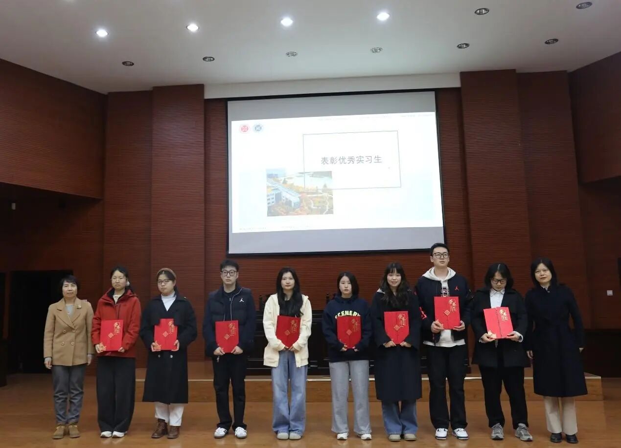 在实习表彰与感悟分享环节,学院对2023级优秀实习指导老师和优秀实习生进行了表彰。李一凡书记为贾翀检察官、董争战律师颁发了“优秀实习指导老师”荣誉证书。卞辉、田红梅老师为八名实习表现突出的优秀实习生颁发了荣誉证书。丁晓雯、陈竟老师为新聘任的四位校外实务导师颁发“研究生实务导师”聘书。2023级优秀实习生代表王英頔同学分享了其在雁塔区人民检察院未成年人权益保护检察部门的实习感悟。她表示,此次实习让自己深刻体会到司法工作不仅需要扎实的专业功底和严谨的工作态度,更蕴含着温暖的人文关怀。法律人既要拥有理性的专业思维,更要秉持温热的内心与守护公平正义的信念,这段实习经历将成为自己法律职业道路上的宝贵财富。